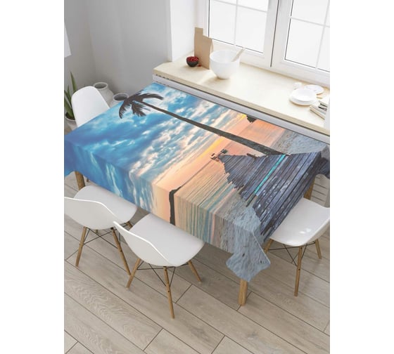 Прямоугольная скатерть JoyArty Закат на лазурном берегу из сатена tc_7825_120x145