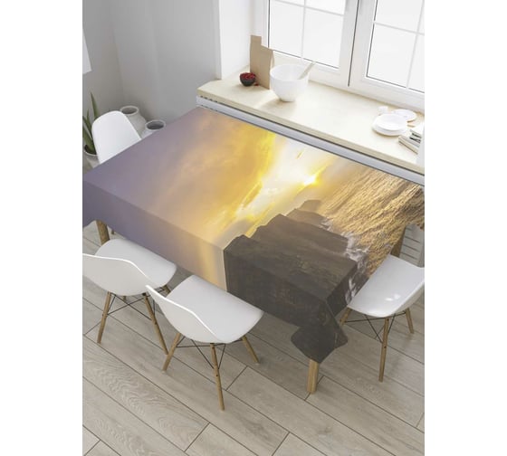 Прямоугольная скатерть JoyArty Закат у морских гор из сатена tc_8445_120x145