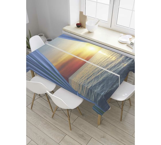 Прямоугольная скатерть JoyArty Закат за занавесом из сатена tc_8480_120x145