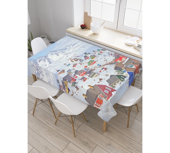 Прямоугольная скатерть JoyArty Заснеженный городок из сатена tc_20630_120x145