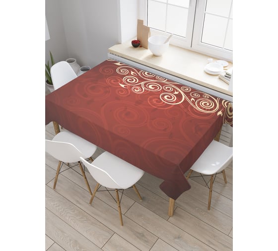 Прямоугольная скатерть JoyArty Завитки на коричневом фоне из сатена tc_30508_120x145 надежно защищает поверхность стола от грязи, легко стирается и практически не мнется. Материал, из которого сшита скатерть, имеет рельефную текстуру, обладает высокой износостойкостью, подходит для кухни и выдерживает большое число стирок. Скатерть относится к категории фототекстиля, она поможет оформить кухню. Изображение наносится методом сублимационной печати, благодаря чему рисунок обладает яркостью и четкостью, что позволяет подобрать этот аксессуар в любом стиле и цветовой гамме. Скатерти представлены в двух типоразмерах.