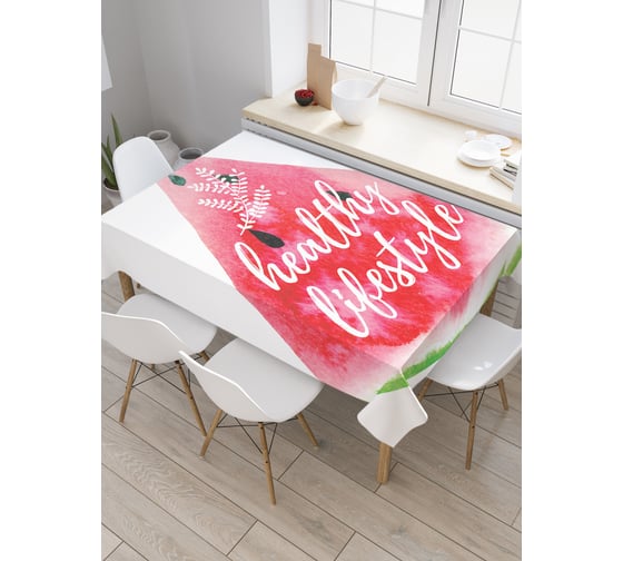 Прямоугольная скатерть JoyArty Здоровый образ жизни из сатена tc_36906_120x145