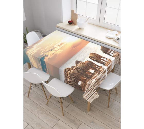 Прямоугольная скатерть JoyArty Зебры на реке из сатена tc_2720_120x145