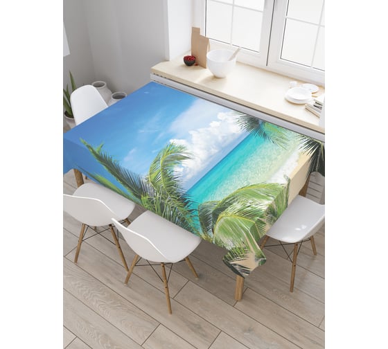 Прямоугольная скатерть JoyArty Зеленые тропики из сатена tc_18938_120x145