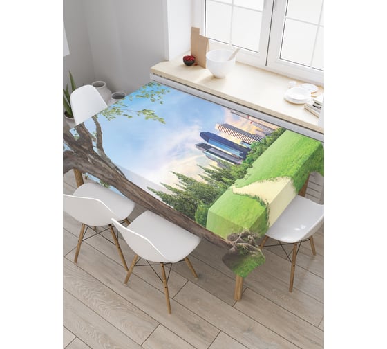 Прямоугольная скатерть JoyArty Зеленый парк в городе из сатена tc_27768_120x145
