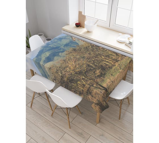 Прямоугольная скатерть JoyArty Жираф на пастбище из сатена tc_37577_120x145