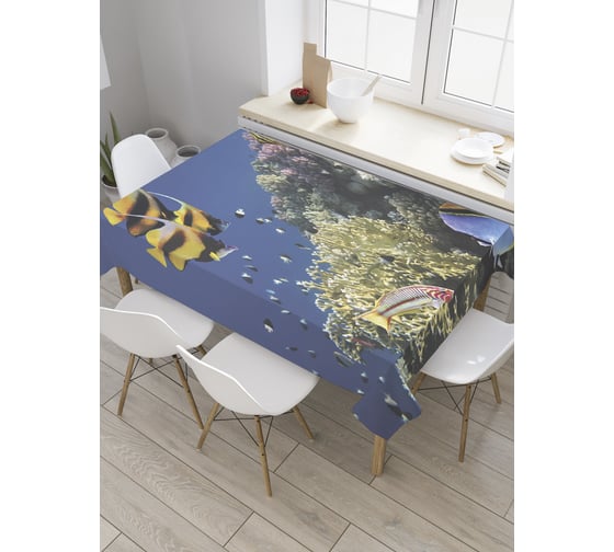 Прямоугольная скатерть JoyArty Жизнь среди кораллов из сатена tc_32278_120x145