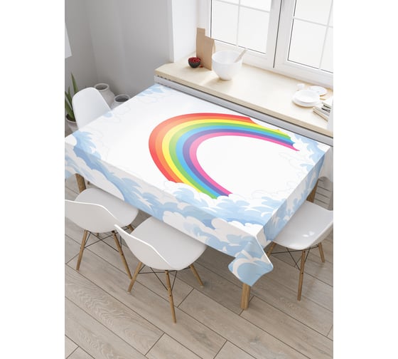 Прямоугольная скатерть JoyArty Зимняя радуга в окне из сатена tc_29011_120x145