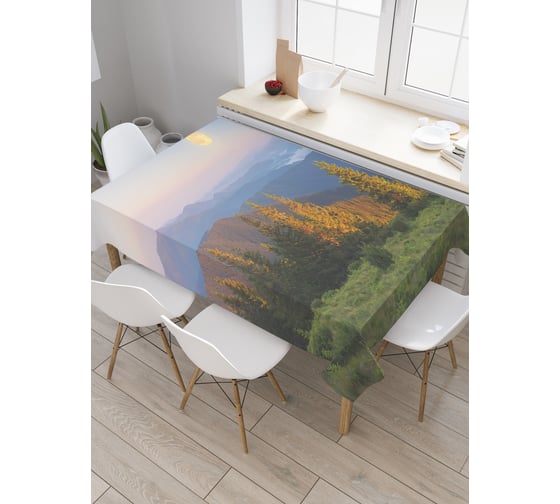 Прямоугольная скатерть JoyArty Золотистая луна над лесом из сатена tc_29848_120x145