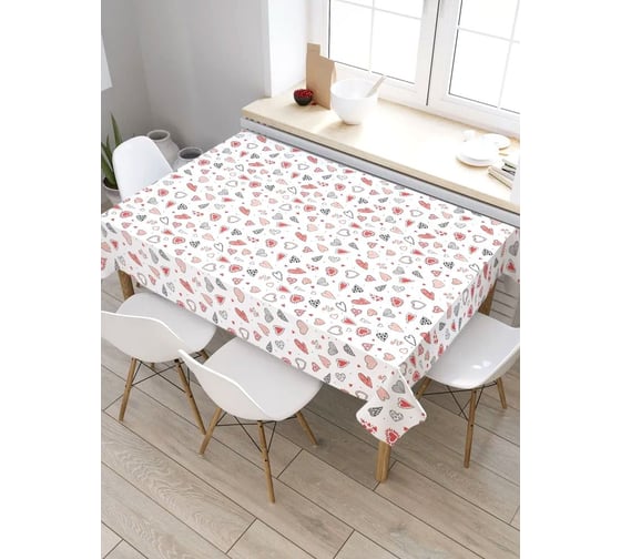 Скатерть прямоугольная тканевая JOYARTY на стол с рисунком Изобилие сердец 120х145 см tc_422651_120x145