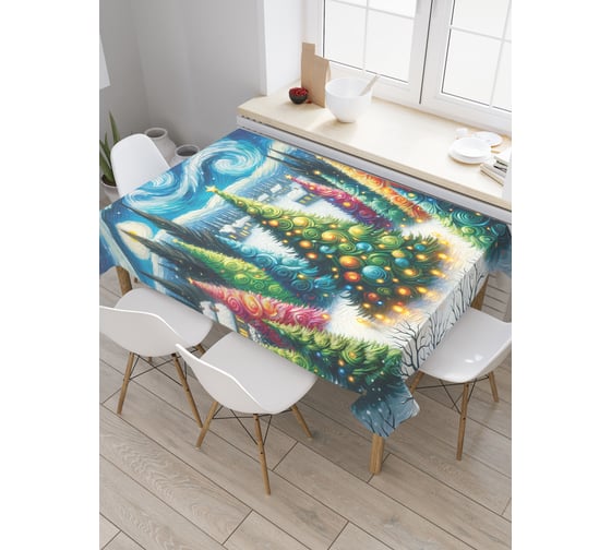 Прямоугольная тканевая скатерть на стол с рисунком JoyArty Нарядные елки 145х180 см, серия Новый год и Рождество tc_sd3892_180x145