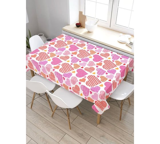 Скатерть прямоугольная тканевая JOYARTY на стол с рисунком Много сердец 145х180 см tc_422653_180x145