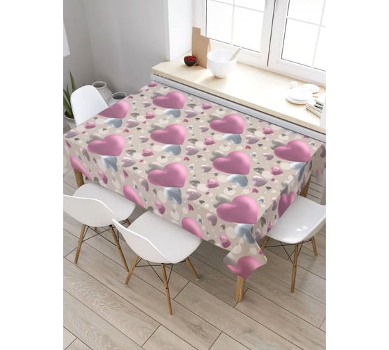 Скатерть прямоугольная тканевая JOYARTY на стол с рисунком Объемные сердца 145х180 см tc_422656_180x145