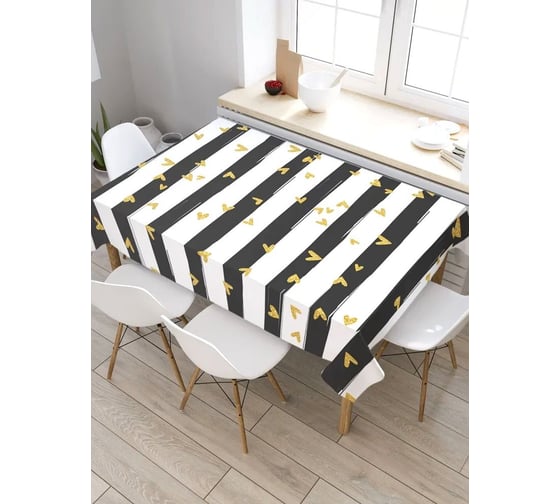 Скатерть прямоугольная тканевая JOYARTY на стол с рисунком Сердечки и полоски 120х145 см tc_422719_120x145