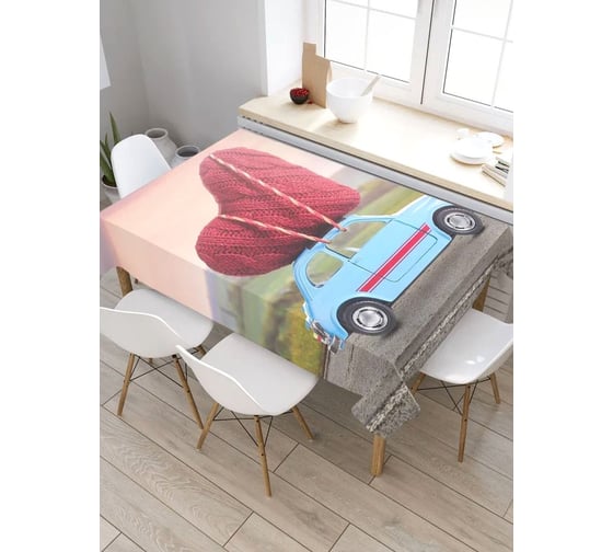 Скатерть прямоугольная тканевая JOYARTY на стол с рисунком Сердце на машине 145х180 см tc_422712_180x145