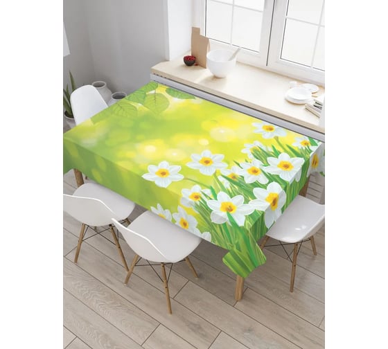 Прямоугольная водоотталкивающая скатерть на стол JoyArty "Цветочные деньки" 120x145 tcox_16652_120x145