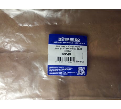 Прямоугольная заглушка для труб НАКРЕПКО (внутренняя; черная; 60х40 мм; 6 шт) 216812