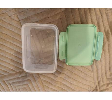 Отличный контейнер! Для моих целей - идеален. Пеку свой хлеб и на работу жена снаряжает бутерброды.Если буханку из хлебопечки(квадратная в основании) по высоте на три части, то бутеры идеально входят в лоток,см фото.Защелки только две,но держат хорошо. Прошел испытание и супом микроволновке,всё окей.Советуй к покупке!