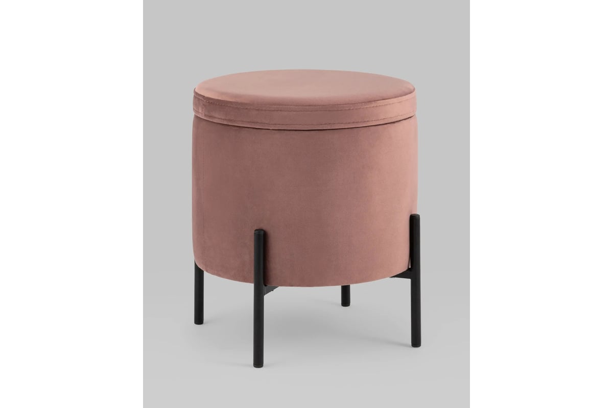 Пуф Стул Груп Грейс с ящиком для хранения, велюр, круглый, пыльно-розовый vd-grays-b15