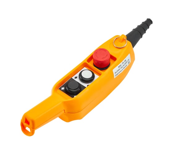 Максимальное напряжение 500V. Является управляющим устройством для грузоподъёмного оборудования, который передаёт электрический сигнал по кабелю, на катушку магнитного пускателя, тем самым коммутирует контакты пускателя, для передачи фазы на двигатель перемещения, либо подъема тельфера. Основное применение: краны мостовые электрические, лебедки электрические, тали электрические.