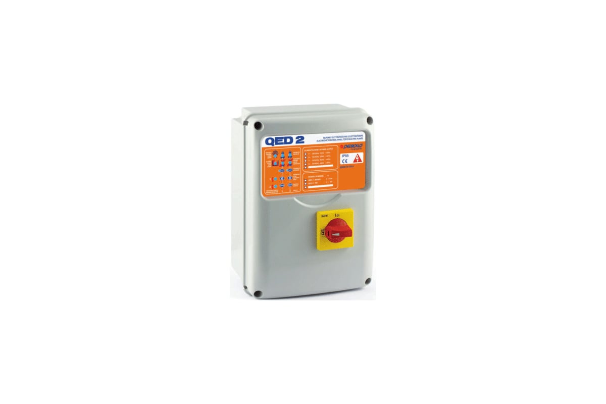 Пульт QED 2 - MONO PEDROLLO 533QED02M используется для защиты насоса от перегрузок и короткого замыкания. Прибор можно подключить к тепловой защиты, встроенной в обмотку дренажных насосов серий VХС, РVХС‚ МС, РМС. Рассчитан на подключение поочередного запуска первого насоса, запуска второго насоса, остановки и сигнализации уровня. Номинальный ток - от 2 до 16 А. Регулировка мощности - 0,37-2,2 кВт (0,5-3 л.с.).