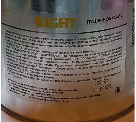 Отзывы о пушечном сале OILRIGHT жестяная банка, 2 кг 6105