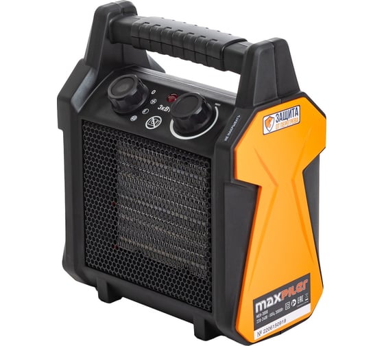 Пушка тепловая электрическая MAXPILER 2/3кВт, 210м³/ч, обогрев 30м², керамический нагреватель, защита MEH-3000