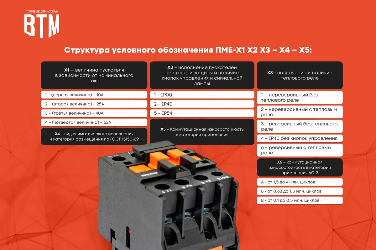 Пускатель ВТМ (S) ПМЕ-213-25А-42АС-(4з+6р)-УХЛ4-А-EURO ВТМ00058648 - устройство дистанционного управления, предназначенное для частых включений и отключений электрических цепей. Предназначен для работы на переменном токе при напряжении сети до 660 Вольт и частоте 50-60 Гц.