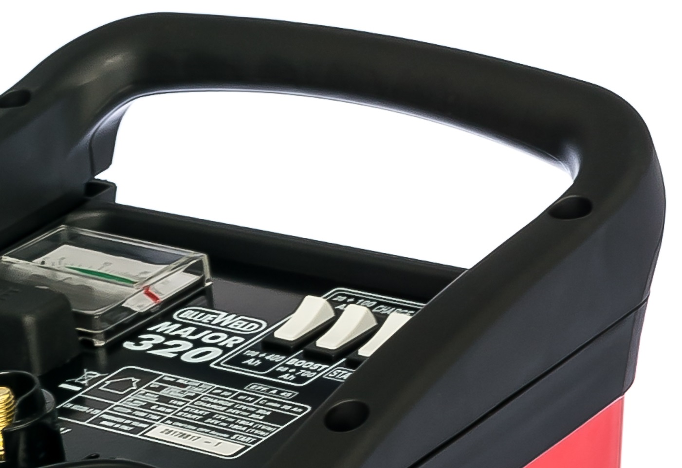 Удобная транспортировка Колеса облегчают перевозку пуско-зарядного устройства BlueWeld Major 320 start 829636 829810. |