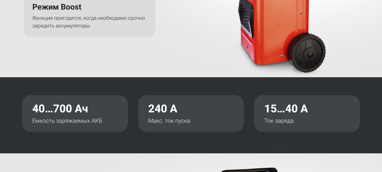 Пуско-зарядное устройство - однофазный прибор, предназначенный для пуска двигателей всех типов транспортных средств независимо от вида топлива. Удобная ручка существенно упрощает перемещение по рабочей зоне. Прочный корпус эффективно защищает все внутренние элементы от механических повреждений. Аппарат легко разместить в любом удобном месте гаража или авторемонтной мастерской.