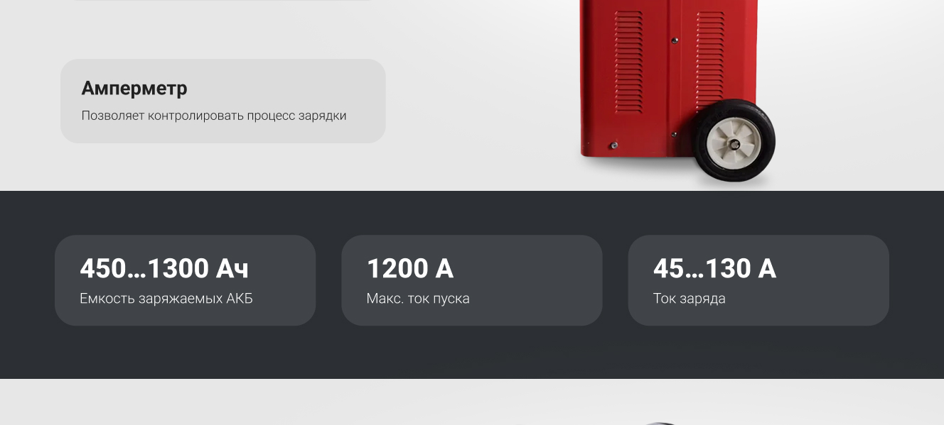Данная модель используется для быстрой зарядки кислотных аккумуляторов. Способен запустить легковые автомобили, фургоны, грузовики или тракторы.