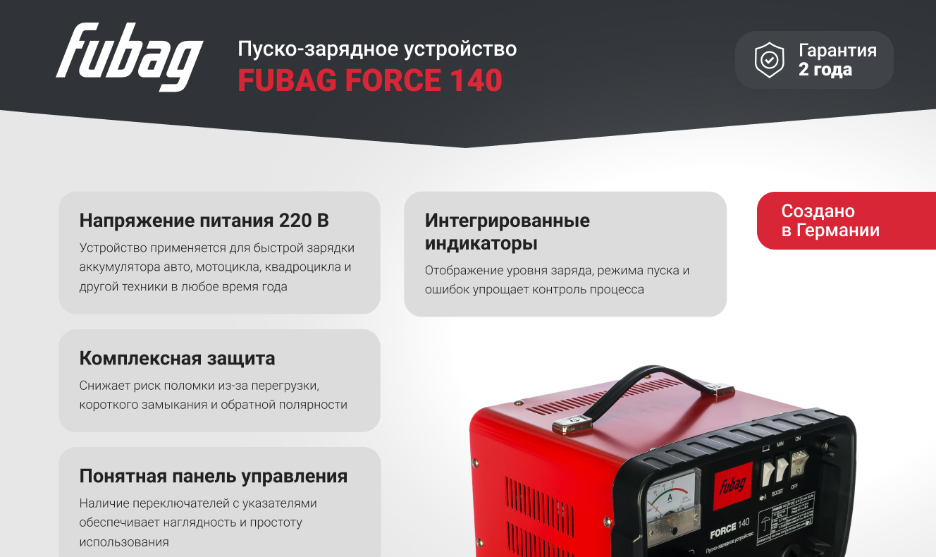 Особенности пуско-зарядного устройства FUBAG FORCE 140