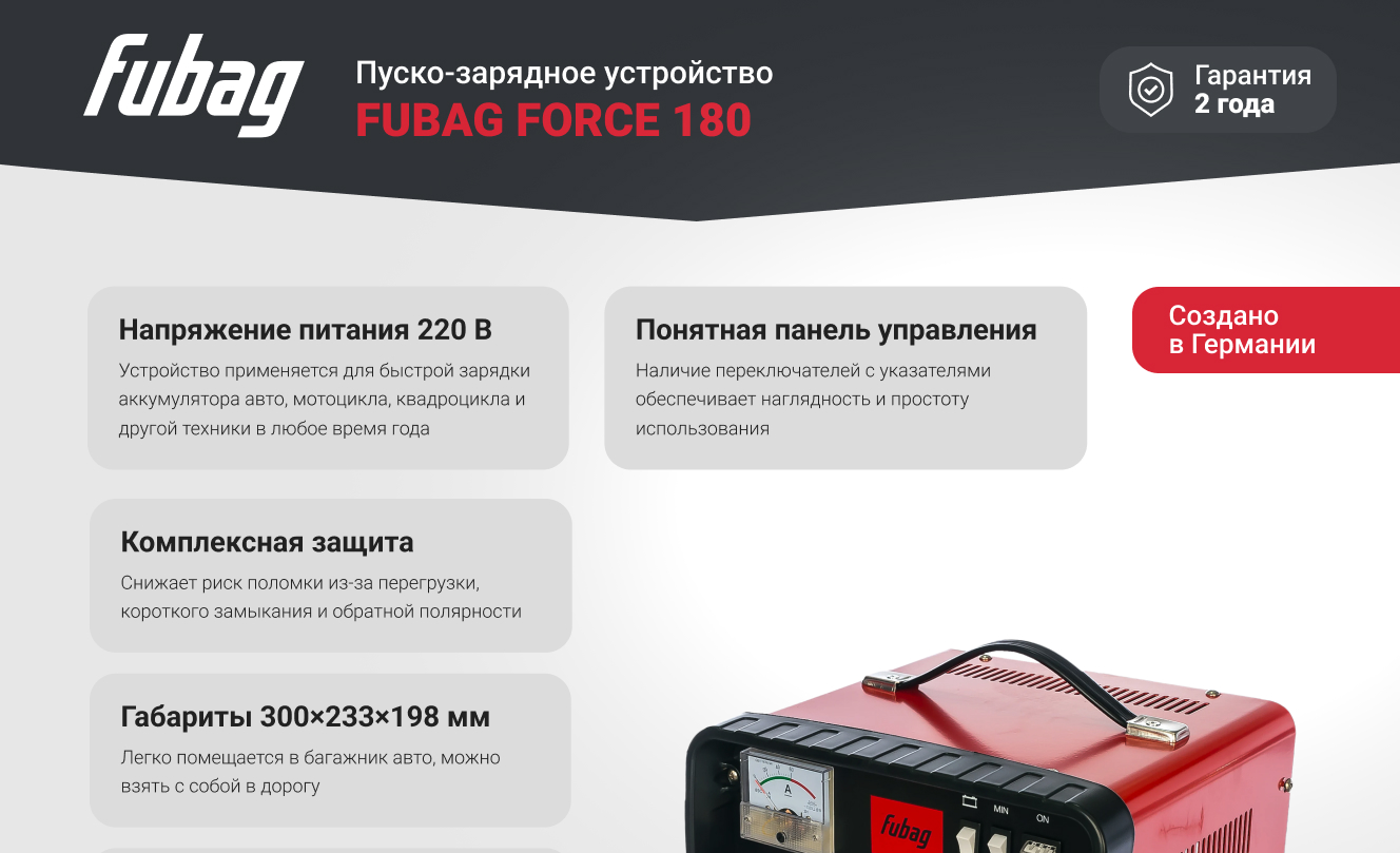 Особенности пуско-зарядного устройства FUBAG FORCE 180