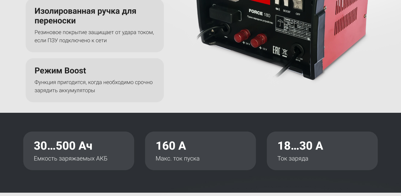 Преимущества пуско-зарядного устройства FUBAG FORCE 180