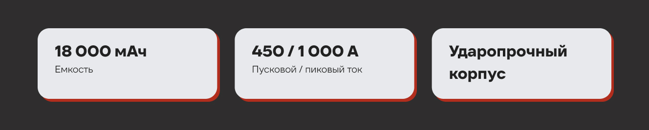 Качественный корпус, высокий пусковой ток, большая емкость. Кислотные внутренние батареи в морозы - это несомненный плюс, заведет авто в любой мороз. Легко запустил дизельный Паджеро Спорт и 24В грузовичок. Внутри реально стоят 2 аккумулятора на 22 ампер-часа каждый. Спасибо производителю за такой сюрприз!