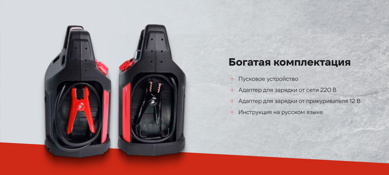 - запуск бензиновых и дизельных двигателей автомобилей, мото - и водного транспорта, бензиновых и дизельных генераторов с автозапуском, а также другой техники в ситуациях, когда заряда аккумулятора недостаточно для запуска двигателя;