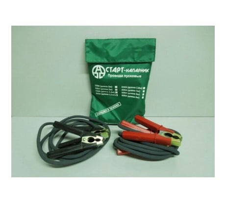 Пусковые провода "СТАРТ-Напарник" предназначены для соединения одноименных клемм аккумуляторов автомобилей для того, чтобы осуществить дополнительную подпитку стартера в автомобиле с разряженной аккумуляторной батареей или загустевшим от мороза маслом.Особенности:1. Эластичный и морозостойкий кабель в резиновой изоляции; 2. Медный многожильный проводник; 3. Провода с зажимами надежно и качественно соединены; 4. Допустима эксплуатация при температуре от -50С до +80С.