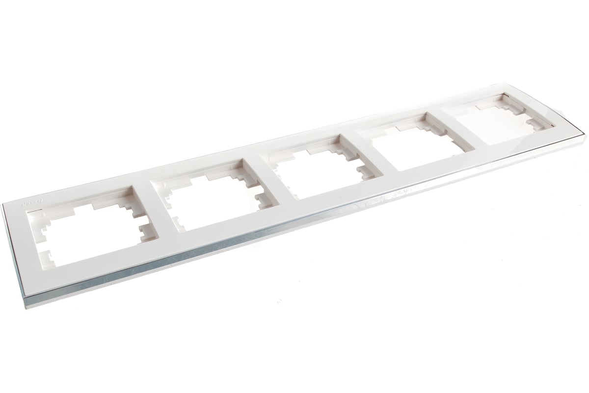 Пятиместная горизонтальная рамка LEZARD RAIN б/ вст белая с бок. вст. хром 703-0225-150