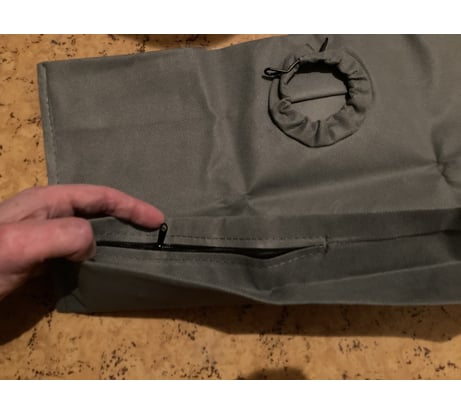 Мешок 🔥, довольно плотный, добротно сшит, внизу мешка есть молния длиной 10-15 приблизительно, на горловине стоит металлическая прижина-хомут, удерживающая мешок.