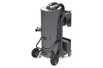 Промышленный пылесос с мусорным баком 110 литров и циклонной технологией фильтрации загрязнений с системой автоматической пневмоочистки HEPA фильтров.