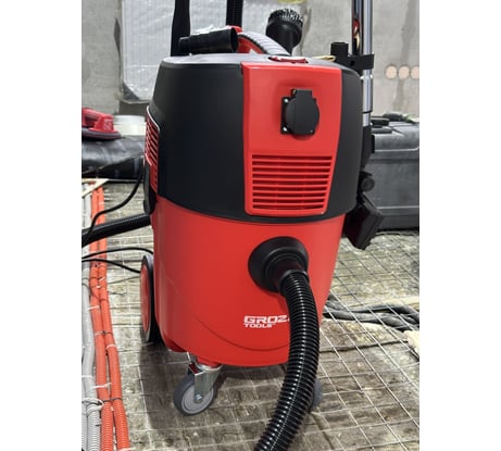 Навороченный строительный пылесос!! Очень мощный и тихий. Делаю с ним запилы а так же шлифую керамогранит.Когда чет попадает большое в шланг, мощность увеличивается ещё больше. Есть ещё какая то кнопка ( видимо система очистки фильтра) :) не ожидал что пылесос будет такой навороченный!!!