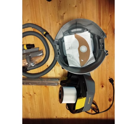 Критерий выбора был-универсальный пылесос гаражного хранения для уборки машины и гаража, периодическими работами с электроинструментом (столярка), возможный ремонте в квартире. Выбор был между этим пылесосом и Bosch GAS 12-25 (цена при наличии скидки одинаковая). Отказался от Bosch из-за предфильтра, который со временем станет очень пыльным и каждый раз открывая пылесос будет обсыпаться. Что понравилось: пылесос легкий и компактный. Высота пылесоса позволяет его перевозить в багажнике в вертикальном положении. На даче более пяти лет трудится WD 5, его перевозить только на боку или снимать полку багажника. Для моих нужд длинны шланга хватает более чем. Этому способствует и подключение шланга к пылесосу вверху под углом. Из-за такого расположения шланг не елозит к примеру по бамперу при уборке багажника. Выход воздуха, смотрим на розетку, с правой стороны. Там два выхода, ближний к шлангу сильно выдувает, ближе к кабелю питания поток воздуха в два раза слабее. С левой стороны пылесоса забор воздуха. Шланг и кабель питания на пылесосе фиксируются и при переноски или хранении не слетят. Неоригинальных, но добротных мешков для пыли великое множество. Для уборки машины придётся докупать две насадки с мягкой щетиной для пластиковых панелей и широкую для для уборки багажника. Пылесос полностью оправдал мои ожидания.