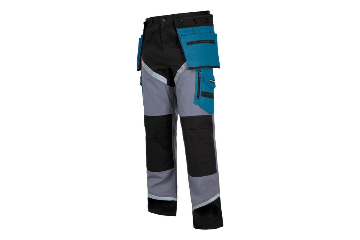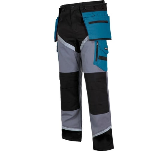 Рабочие брюки LAHTI PRO серо-черные, р. 2XL L4050205 подходят для работы в летний сезон. Оснащены четырьмя монтерскими карманами, боковыми карманами, карманами для протекторов коленных суставов, карманом для мобильного телефона, двумя петлями для молотка, двумя держателями для измерительного инструмента.