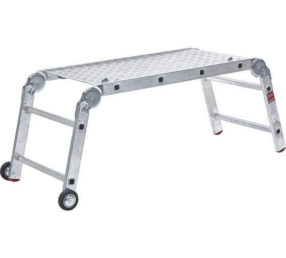 Рабочие подмости, 2x4x2 (металлический помост) Новая Высота 3341242 - универсальное приспособление, которое сочетает в себе сразу три изделия - приставная лестница, помост, а также приставная согнутая лестница. Модель широко используется на заводе или складах.