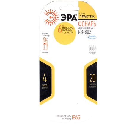 Вопросы и ответы о фонаре ЭРА RB-802 Практик 6Вт COB 1Вт LED, пластик, 3xAAA, защита IP65, крючок Б0029180