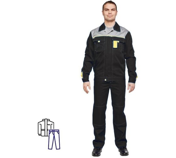 Технические характеристики рабочего летнего мужского костюма ООО Комус л10-кбр черный/серый, р. 56-58 182-188 1538707