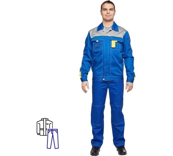 Технические характеристики рабочего летнего мужского костюма ООО Комус л10-кпк васильковый/серый, р.56-58 158-164 1538670
