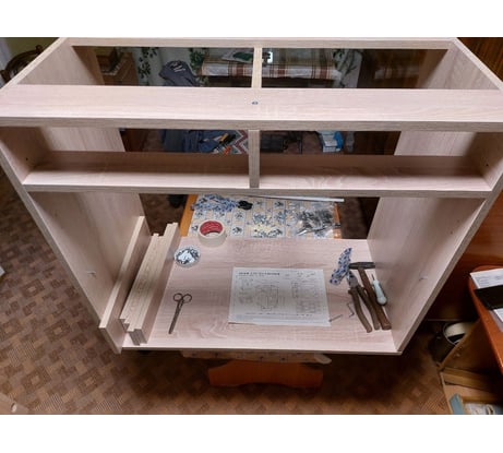 Коробку в магазине выдали порванную, визуально оценил состояние углов у ДСП на предмет сколов, ничего такого не обнаружил и забрал заказ. Уже при сборке выяснилось, что не хватает конфирматов (болтов для соединения ДСП) и самое главное - нет направляющих салазок для выдвижных ящиков. Очень некрасиво получилось, так как заказывал этот модуль своему деду, и в итоге, так не собрал его до конца, а ведь специально поехал к нему ради этого...