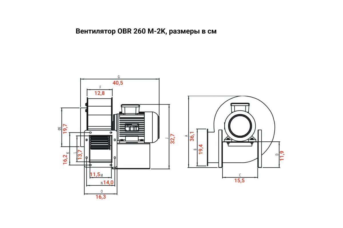 Радиальный вентилятор одностороннего всасывания BVN OBR 260M-2K