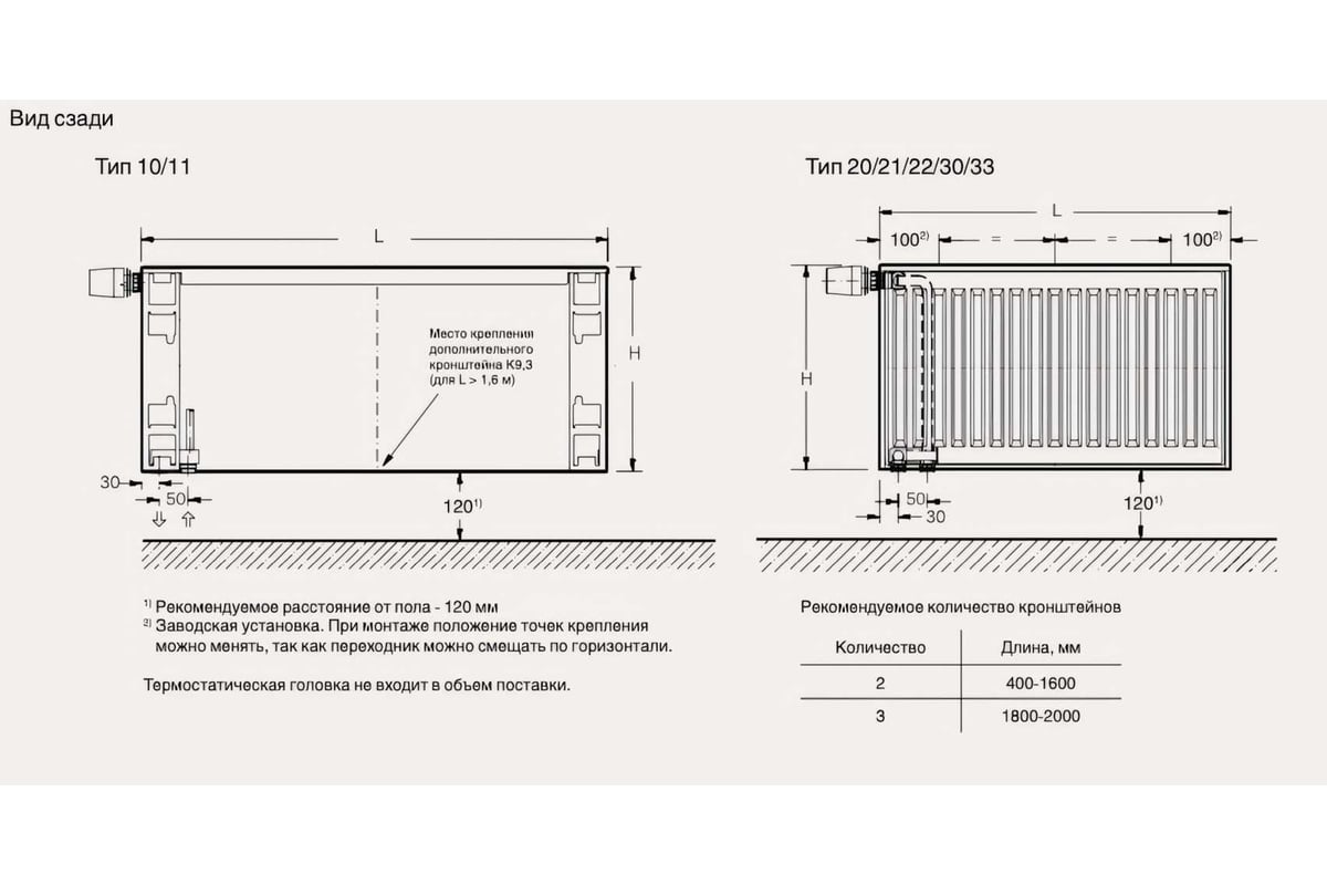 Внимание! Кронштейны и термостатическая головка приобретаются отдельно.